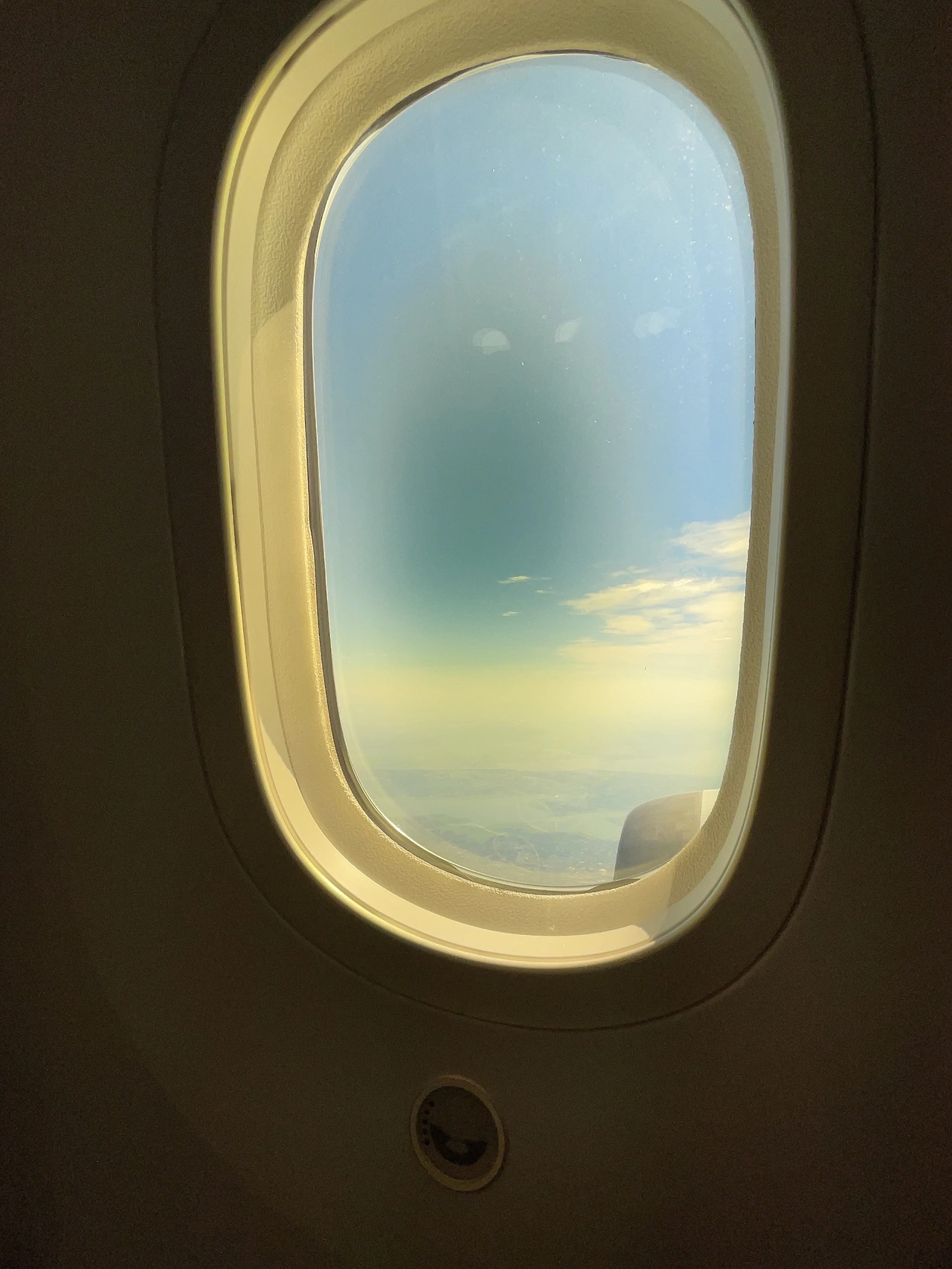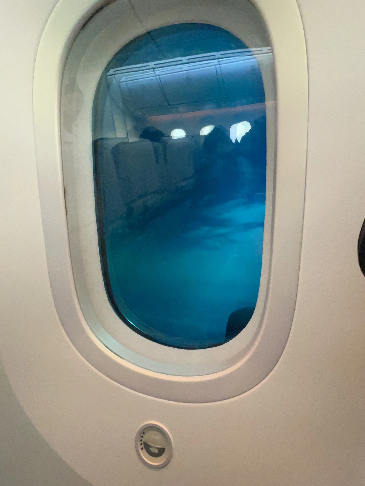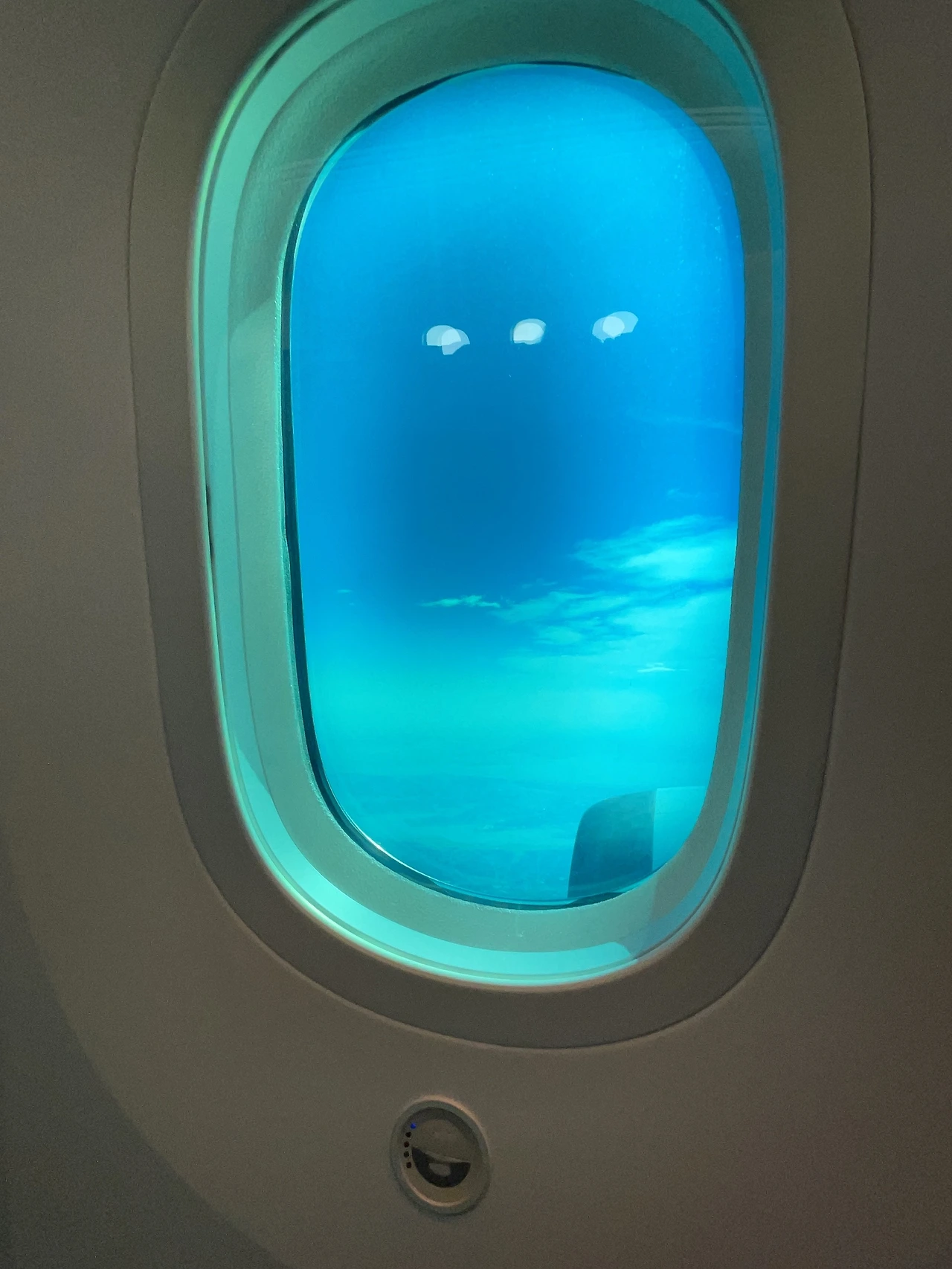 창문 덮개 대신 창문 어둡기를 조절해 빛을 차단할 수 있는 것도 좋았다. 덮개를 열면 눈이 너무 부시고 닫으면 아무것도 보이지 않아 답답했는데, 가장 어둡게 하더라도 가장 오른쪽 사진처럼 빛은 차단되면서 여전히 창 밖을 볼 수 있어서 좋았다.