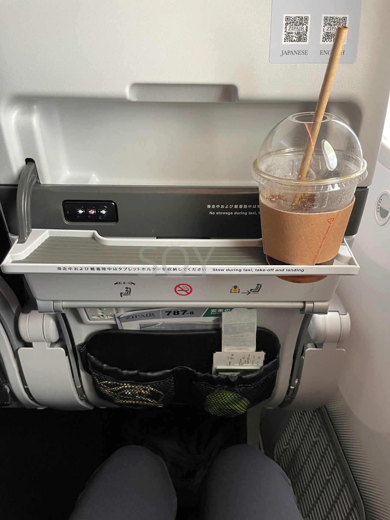 ZIPAIR에는 등급이 2개가 있다. 비즈니스석에 해당하는 Full-flat과 이코노미에 해당하는 Standard가 있는데, 나는 Standard를 이용했다. 비행기 좌석은 여느 저가항공 이코노미와 비슷했다. (국적기 이코노미가 확실히 넓긴 넓다.)