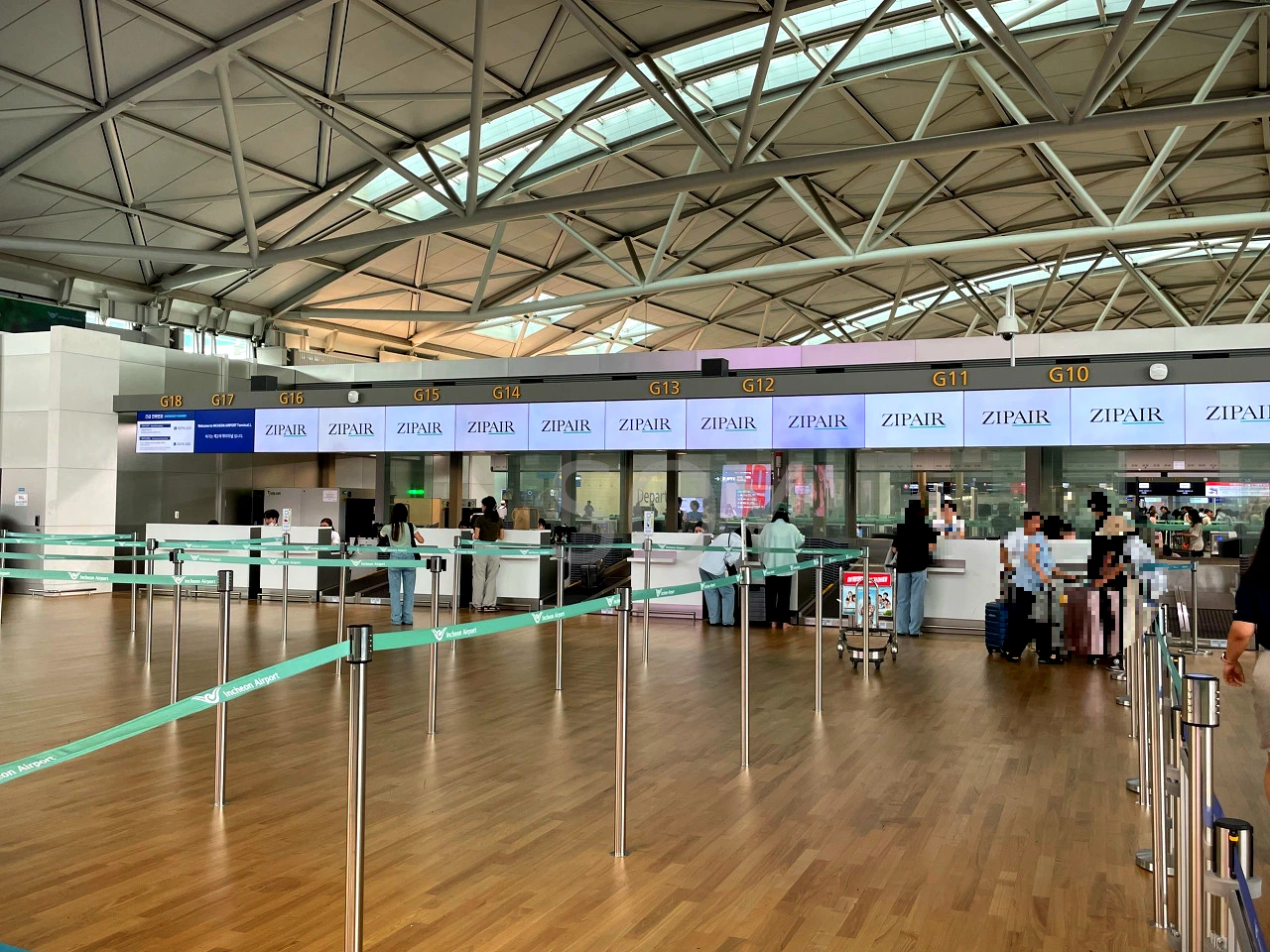 공항버스에서 내리니 바로 ZIPAIR 체크인 게이트였다. ZIPAIR 체크인 카운터는 7번 게이트로 들어가서 G 카운터에 있다. 비행기를 이용하는 사람이 많지 않아서 그런지 줄도 없고 직원분도 친절하셔서 첫인상이 좋았다.