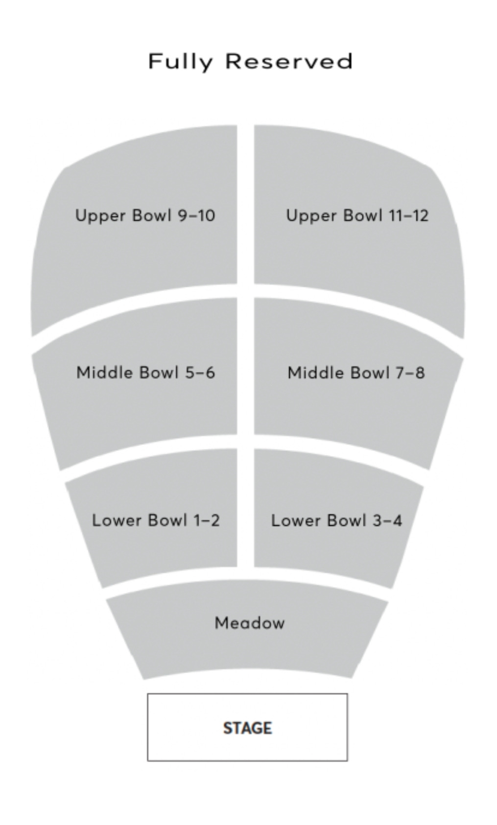 Middle과 Upper bowl이 돗자리 석이다. Meadow는 VIP석으로 원형 테이블에 4매씩 예매하게 되어 있었다. 그리고 이 분들께는 공연 도중에 음식이 서빙되었다. 거의 뭐 디너쇼-