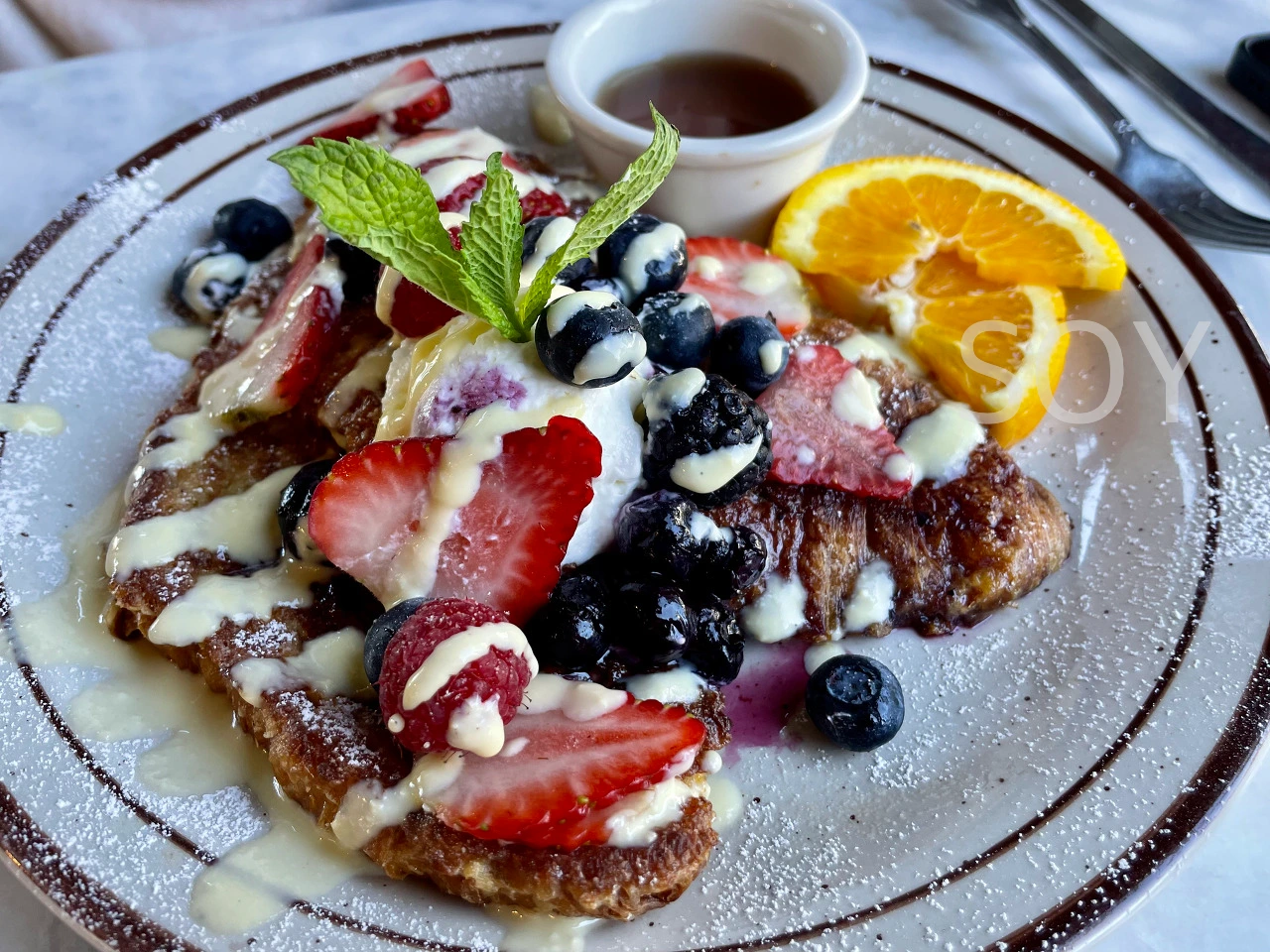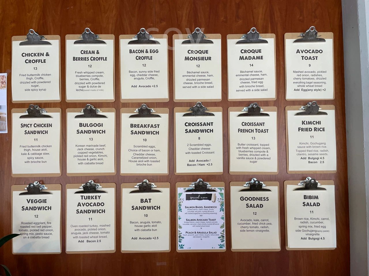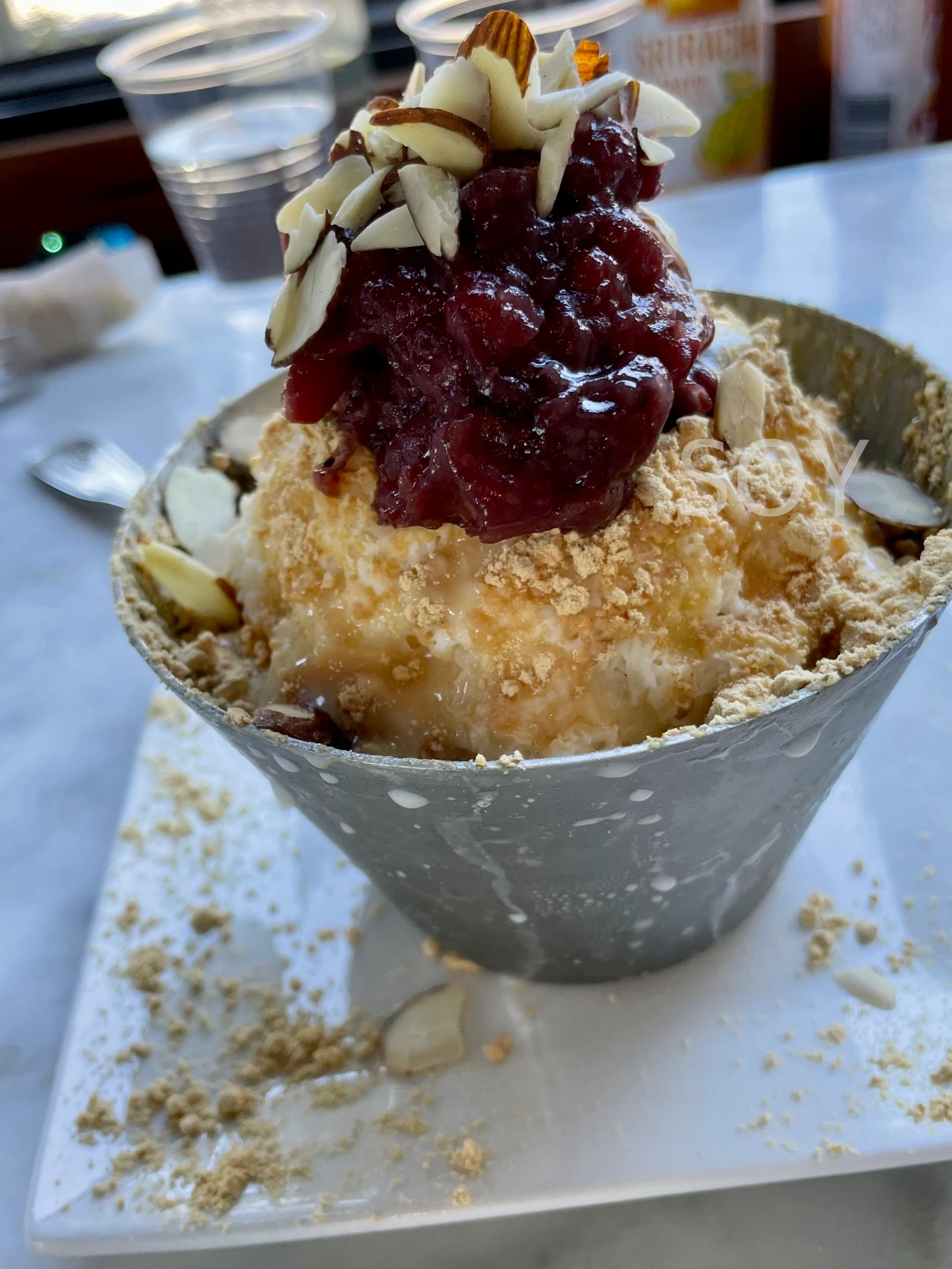 메뉴에 불고기 샌드위치, 김치볶음밥, 비빔 샐러드도 보였다. 하지만 우리는 아보카도 토스트, 크로와상 프렌치토스트, 팥빙수를 시켰다. 빙수는 얼음 빙수가 아니라 우유 빙수였다. (버클리에서 K-빙수가 꽤 인기를 끌고 있다. 그래서 빙수로 유명한 다른 곳에서도 시켜 먹어 봤는데, 그곳도 우유 빙수였다.)