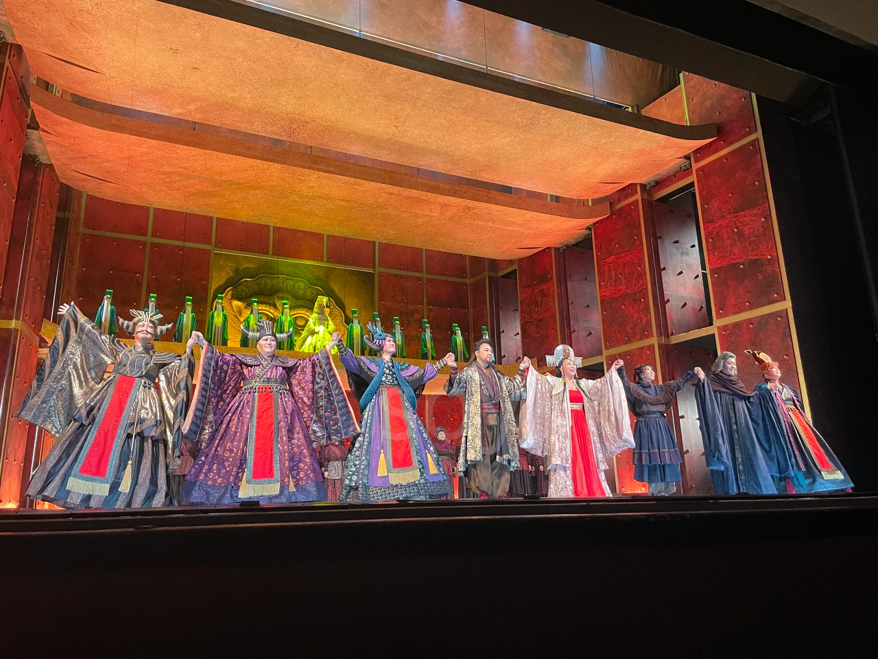 말 그대로 나를 판타지 한복판으로 데려다 놓았다. 짙은 붉은색의 무대 세트는 중국 영화에서 보던 철제벽의 느낌이 있어서 더욱 실감 났다. 1막에서 핑팡퐁이 처음 등장할 때는 향 냄새가 나는 것도 같았다.