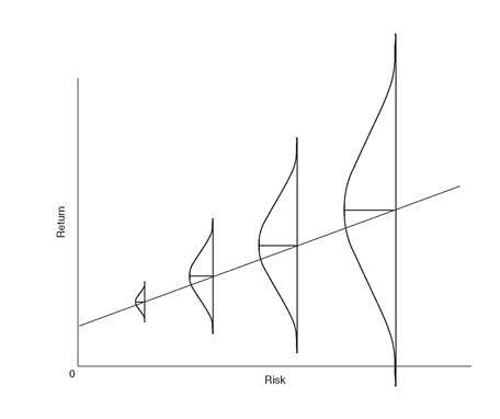 IBM 사례와 관련해서 하워드 막스는 흥미로운 말을 했다. [그림 1-1]은 투자업계 어디서든 쉽게 볼 수 있는 그래프로 리스크와 수익 사이의 관계를 나타낸 것이다. 그래프에서 우상향하는 자본시장선은 리스크와 수익의 양의 관계를 의미한다. 시장은 스스로 이 같은 상황을 만들어 리스크가 큰 자산일수록 높은 수익을 제공한다. 그렇지 않다면 리스크가 큰 자산을 누가 사려고 할까?