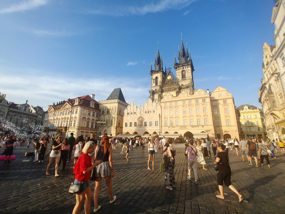오후에는 프라하의 구시가지 쪽을 찾았다. 프라하는 크게 신시가지와 구시가지로 나뉜다. 구시가지 광장에 이르렀을 때는 흐리던 하늘이 때마침 화창해졌다. 옛 건물들이 광장을 감싸고 있는 듯한 광장은 아늑했다. 광장 중앙에는 비눗방울을 만드는 분이 계셨는데, 관광객들에게 좋은 볼거리가 됐다. 어린아이들이 비눗방울을 쫓아다니는 장면들이 햇살과 어울리며 광장을 수놓았다. 이후에는 화약탑 등 주변을 산책하듯이 둘러봤다.