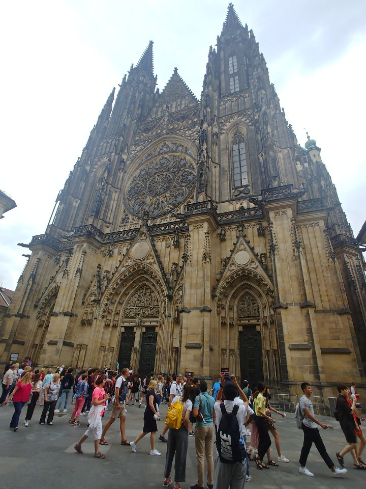 다음 날에는 프라하성부터 둘러봤다. 프라하성은 코스마다 입장할 수 있는 곳이 달랐다. 성 비투스 대성당, 구 왕궁, 성 이르지 바실리카, 황금소로, 달리보르카 타워를 볼 수 있는 B코스 티켓을 끊었다. 성 비투스 대성당은 외관부터 웅장했다. 9세기에 바츨라프 1세가 교회 건물을 지은 후 11세기에 로마네스트 양식으로 재건축됐고, 14세기 카를 4세가 고딕 양식으로 새로 지으며 현재의 모습을 갖추게 됐다. 프라하, 체코와 관련된 역사적인 이야기 중에 카를 4세가 많이 등장한다. 카를 4세는 보헤이마왕, 신성로마제국 황제로 체코의 가장 위대한 왕으로 여겨지고 있다고 한다.