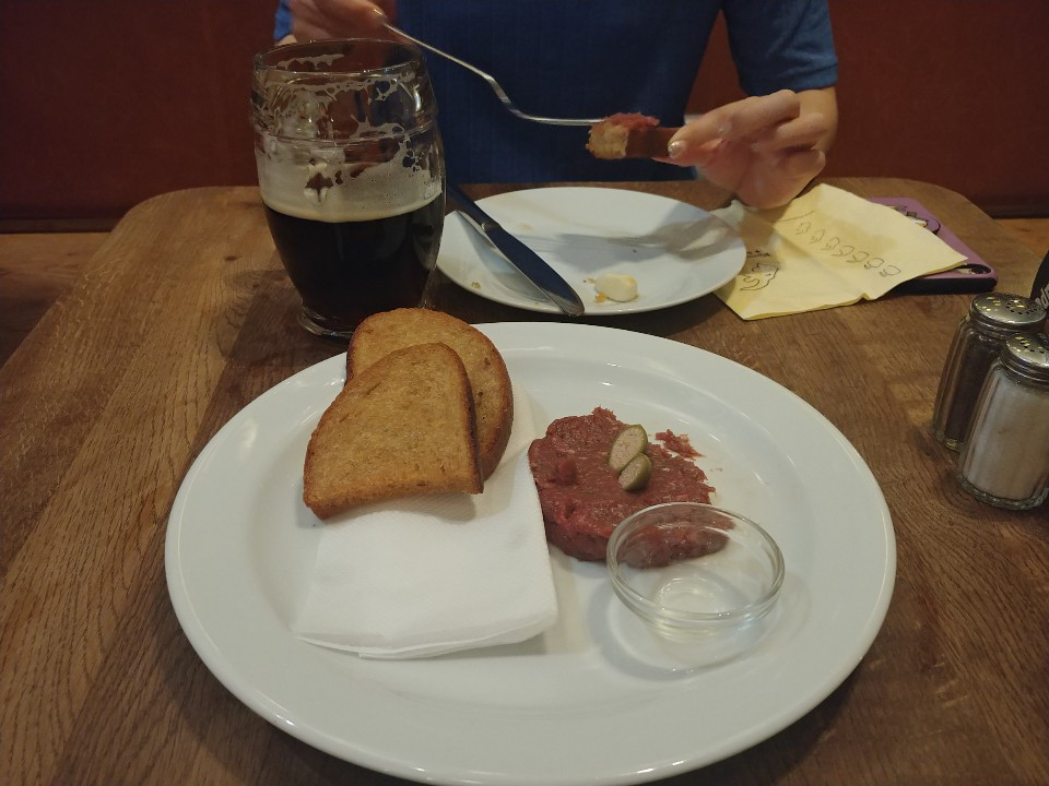 여유 있는 여행을 즐기는 편이지만, 비교적 짧았던 프라하 여행 탓인지 쉴 틈 없이 걷고 또 걸었다. 하루 종일 돌아다니다 보니 어느덧 저녁 식사 때가 됐다. 이날 저녁은 코젤 직영점을 가기로 했다. 카를교 근처에 있기도 했고, 숙소에서도 멀지 않아서였다. 여행 전부터 체코 맥주를 많이 마실 생각이었으므로 코젤 직영점이 알맞았다. 코젤 직영점에서 마신 코젤 흑맥주는 유난히 시원했고, 뒷맛이 깔끔했다. 여행의 피곤함은 흑맥주 한 모금만으로도 말끔하게 씻겼다. 타르타르도 기대 이상이었다. 딱딱한 빵에 생마늘을 비빈 후 익히지 않은 소고기와 먹는 타르타르는 맥주 안주로써 제격이었다. 한국 분들이 많이 찾아서인지 종업원 분들이 친절하게 "안녕하세요"라고 한국말로 인사하는 것도 좋은 기억으로 남았다.