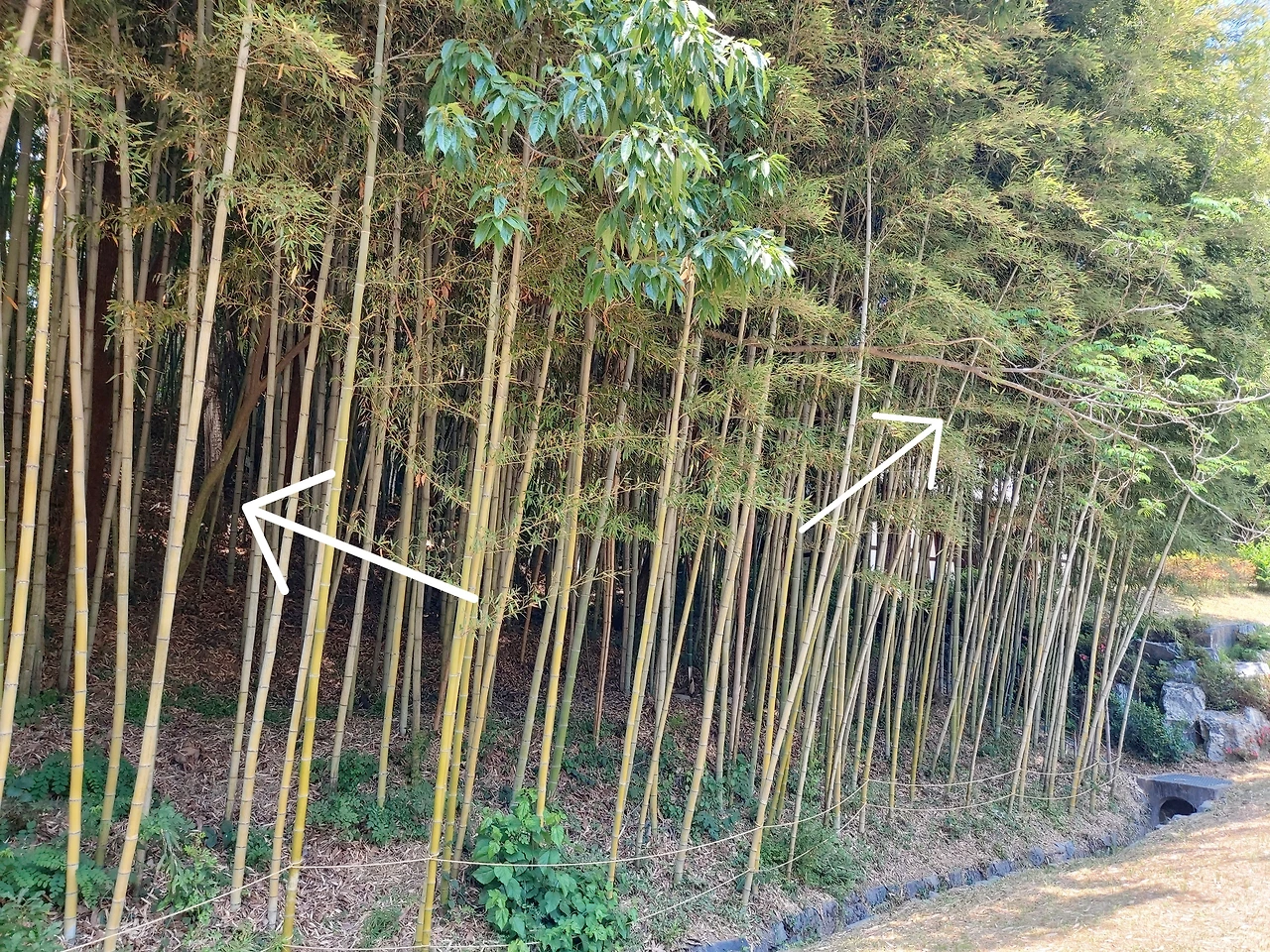대나무 틈 사이로 가지를 뻗고 잎을 피운 나무.