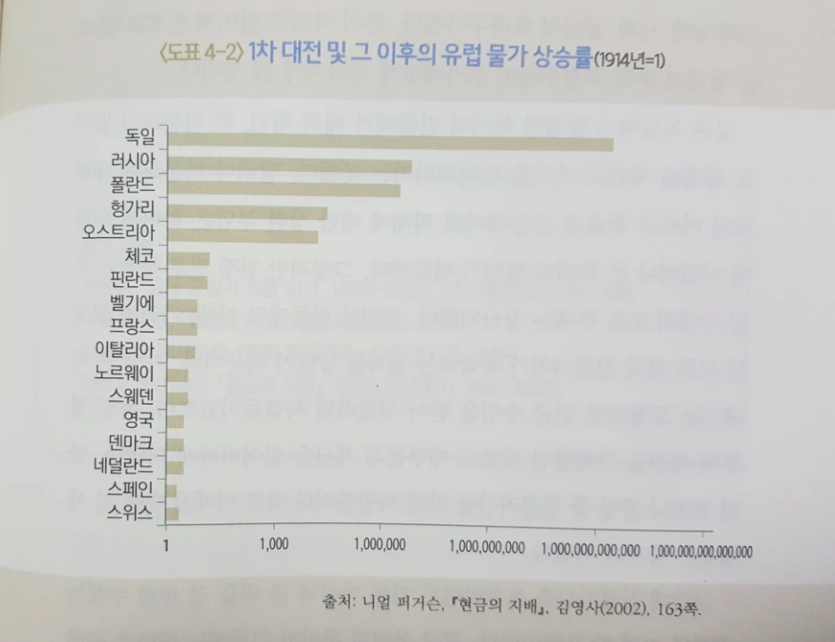 1차 세계대전전이 끝난 후 파리평화회의 (Peace Conference at Paris)에서 프랑스는 패전국인 독일에게 1,302억 금 마라크를 배상금으로 요구했고, 그 금액은 독일 국민총생산의 3배를 넘는 액수였다. 정치적 리더가 부족하고, 국민의 신뢰를 잃은 독일은 통화증발을 선택했다.