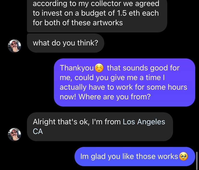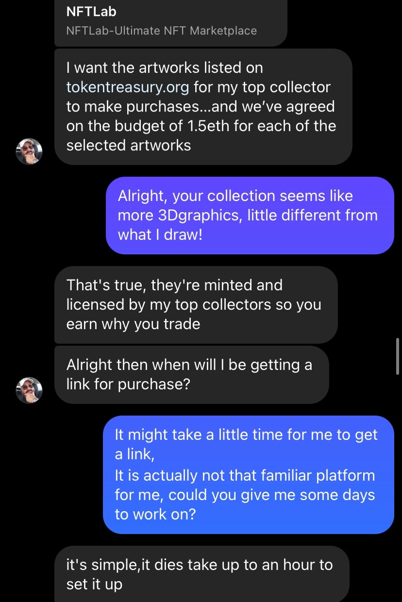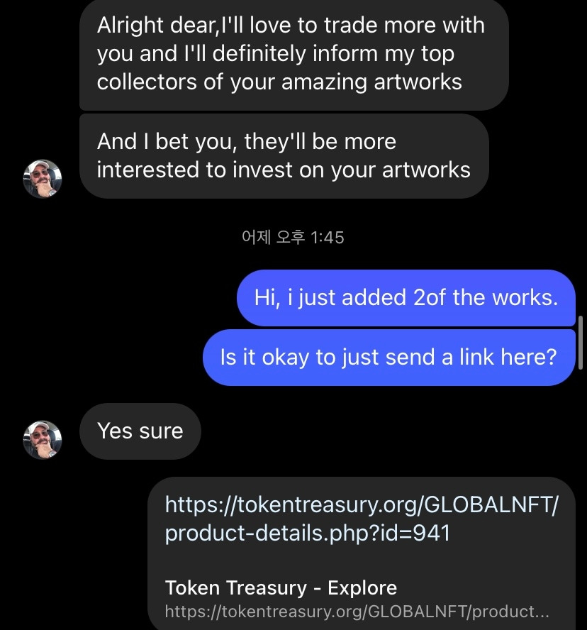 이러고 조금 시간이 지나서 알려준 링크에 그림을 두 점 올렸다고 연락을 했다. 지금 보면 딱 봐도 이상한데 왜 한 거지? 무튼 나 같은 사람이 있을 수 있으니 조심하자.