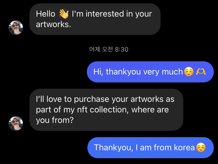 (남자) 너의 그림을 NFT로 구매하고 싶은데 어디서 왔어?