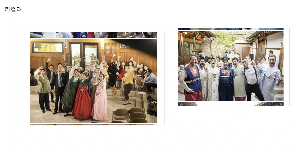 공간을 대여하는 곳에서, 한복 렌탈도 가능했기에, 대여하고 싶은 친구들은 대여를 할 수 있도록 했다. 단, 신부 개인적으로 아쉬웠던 건, 남편이 한복을 입지 않는다 하여, 남자하객 친구들은 그렇게 되면 신랑이 너무 묻혀버리기 때문에, 여자 친구들에게만 렌탈을 하는 식으로 했다.