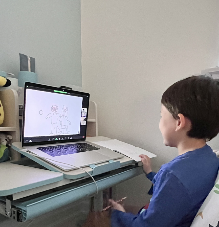 이 근방에서 유일한 한국어 대면수업에서 아이를 빼내려니 마음이 좋지 않았다. 더 낮은 레벨은 온라인 수업뿐이지만 그쪽으로 아이를 옮기기로 했다. 쓰기 활동을 면밀히 관찰하고 수정하는 데 제약이 많은 온라인 수업. 만들기, 소그룹 활동, 몸을 움직이는 놀이로 좀 더 입체적인 한국어 활동을 경험하기 어려운 것도 단점 중 하나였다. 보통 미국의 주말 한글학교는 오전에 세 시간 정도 수업을 한다. 기본 문법, 말하기, 듣기, 읽기, 쓰기, 문화 활동을 아우르는 활동이 있고 간식을 먹으며 쉬는 시간도 포함된 편안한 환경이다. 이런 것들을 한 시간 안에 조금씩 다 넣으려면 온라인 수업 환경에 맞춰진 교수방법의 연구와 세심한 계획이 요구된다. 생각이 많아졌지만 잔뜩 몸을 쓰고 돌아온 여행에서 달고 온 기침이 멈추지 않는 데다가 내 수업까지 준비해야 하는 상황이 되자 걱정을 할 틈이 없었다. 그냥 한 시간 잘 앉아 있다가 오는 것으로 만족하자고 생각해 버렸다. 친구들의 얼굴을 보고 간단한 대화상황에라도 노출된다면 득이 더 많겠지. 어차피 여섯 살에게 가장 우선이 되는 것은 ‘말하기’ 이니까. 몸이 피곤하니 다 내려놓게 된다.