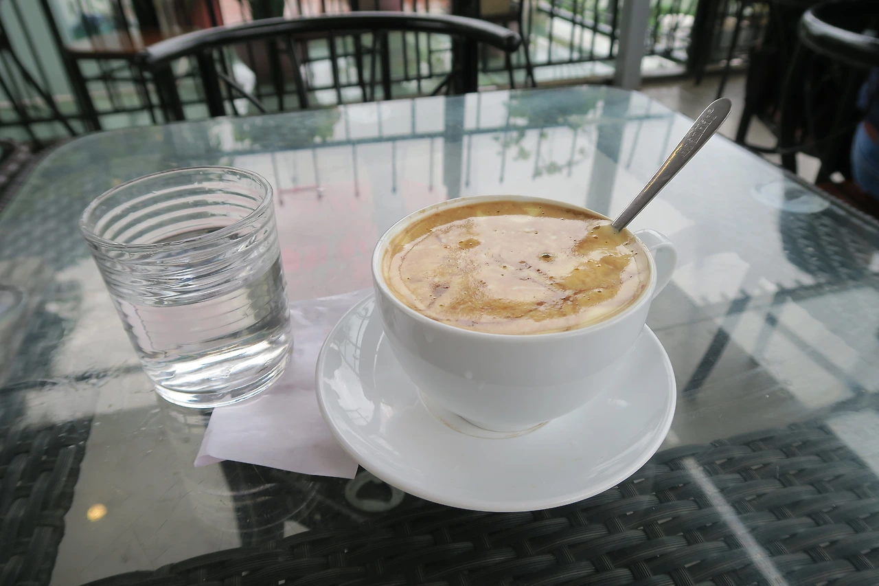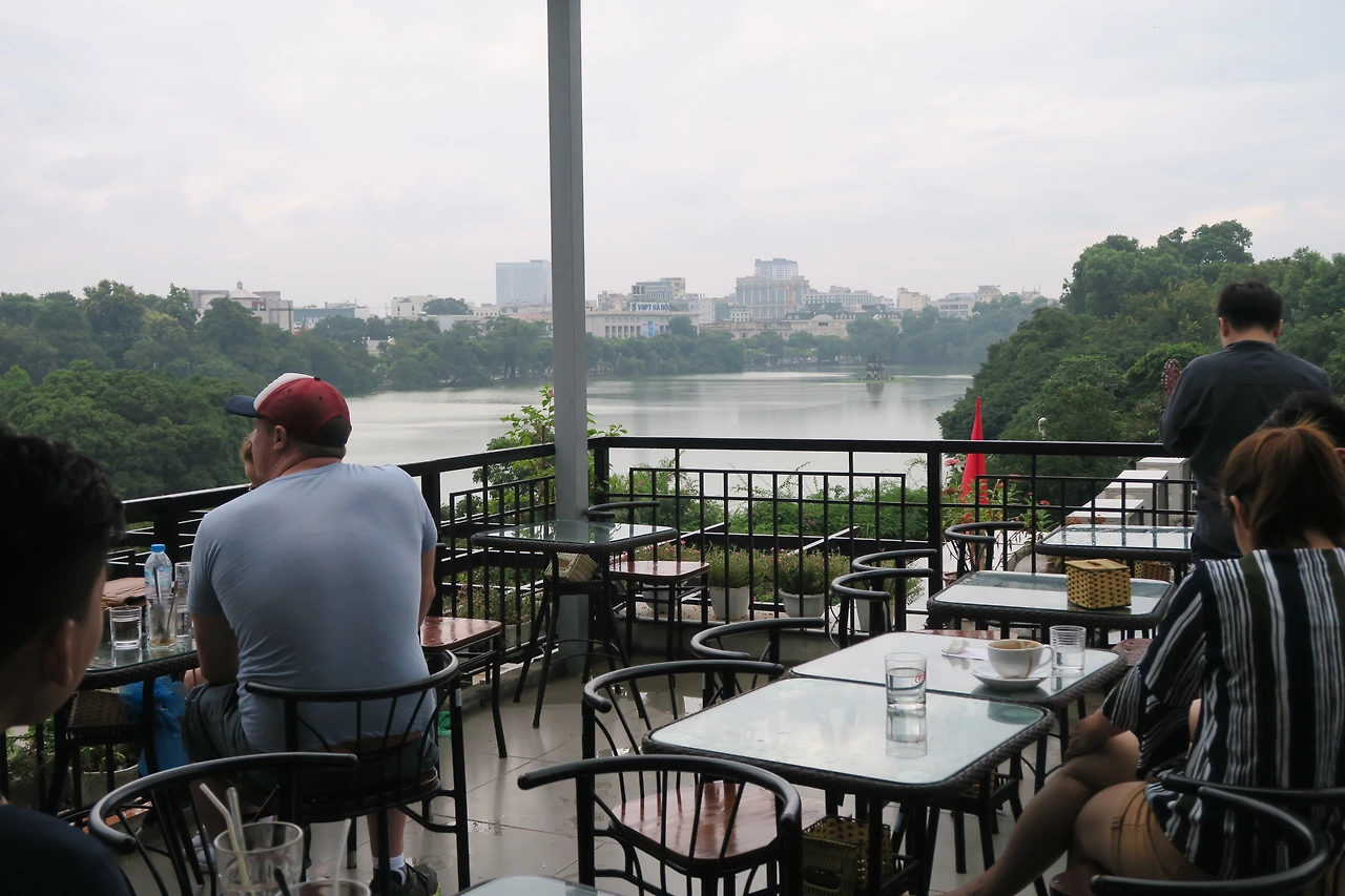 호안끼엠 호수 주변의 건물에 자리한 루프탑 카페. 입구를 찾는 데 정말 애를 먹었다. 당시에 비가 조금씩 오고 있었는데 금세 그칠 거라 생각해서 우비니 우산이니 아무것도 챙기지 않았다. 그런데 빗방울은 점점 굵어지고, 구글 지도에 나오는 위치는 분명 여기가 맞는데 입구는 안 보이고, 마음이 조급했다. 결국 입구를 찾게 된 것은 바로 옆 상점 앞에 앉아 있는 경비 아저씨에게 약도와 이름을 보여주면서였다. 어라 바로 옆 통로였네. 어리숙한 발음으로 '깜먼(감사합니다)'을 겸연쩍게 내밀고 얼른 발걸음을 옮겼다.