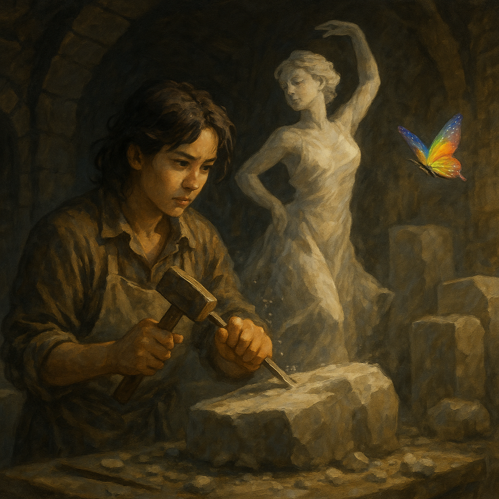 조각실에는 따뜻한 기운이 돌기 시작했다. 차가운 돌덩어리들이 꿈꾸던 형태들로 깨어나고 있었다.