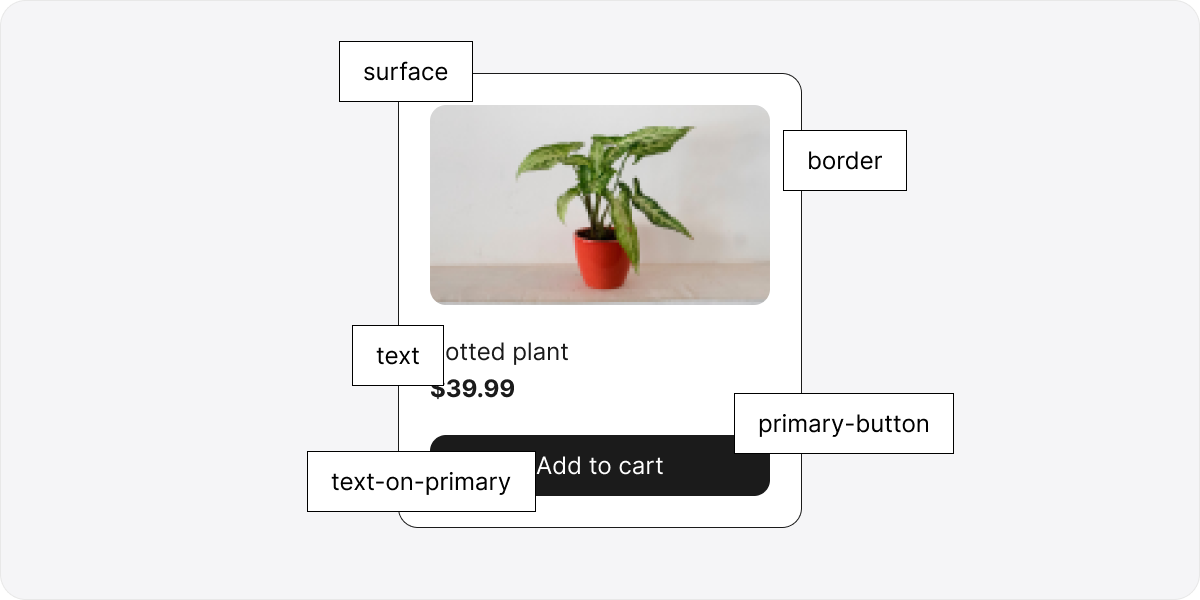 알고 계시겠지만 실제 제품에 활용을 할 땐 sementic으로 선언하기 전에 primitive로 사용하는 색들을 한 번씩 선언하는 과정이 필요합니다. sementic으로만 선언을 한다면 브랜드 색이 바뀌어서 강조색을 다른 색으로 바꿔야 할 때 한 땀 한 땀 강조 색을 사용하고 있는 컴포넌트들을 찾아야겠죠?