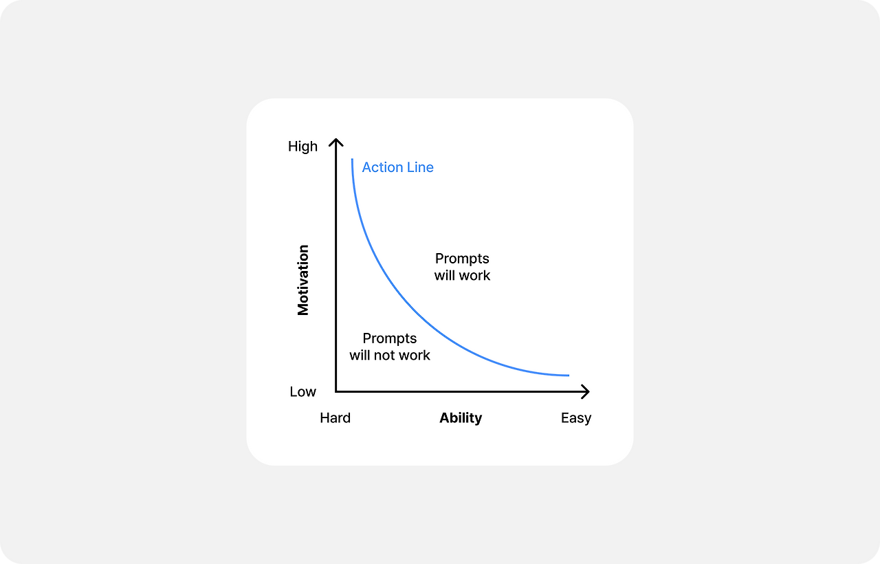 Fogg Behavior Model에 따르면 M, A 모두 적어도 최소치는 넘어야 행동이 일어난다고 합니다.