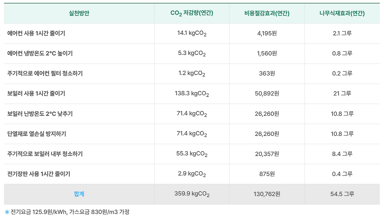 보일러 난방 온도를 2℃ 낮추면 연간 10.8그루의 나무를 심는 것과 같다.