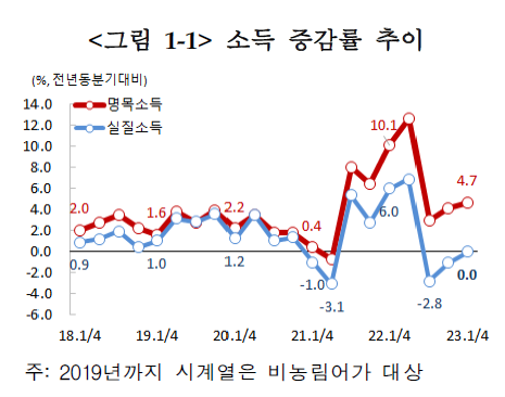 올해 1분기 기준 실질 소득 증가율은 0.0%로 정확하게 그대로였다.