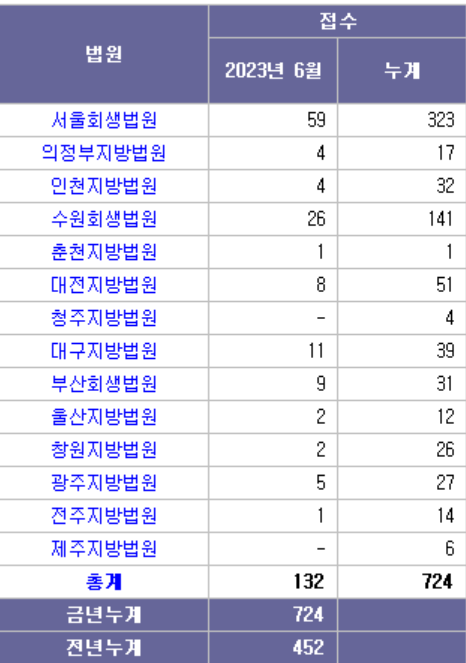 기업의 채무 지급 능력이 적정 수준을 유지하고 있는지 파산 건수를 기준으로 보자면, 올해 접수된 법인의 누계 파산 건수는 724건으로 전년 452건 대비 70퍼센트가량 증가했다.