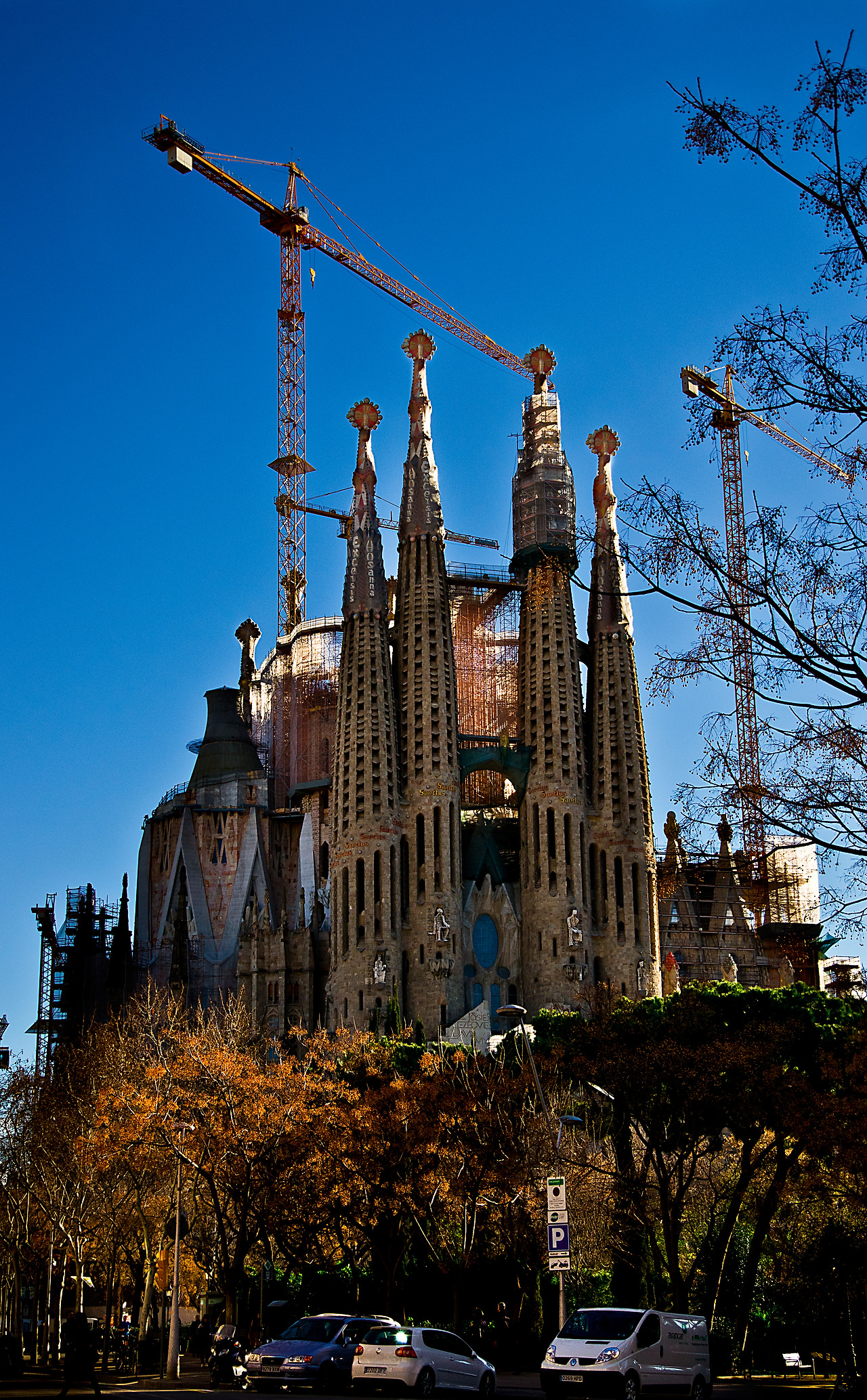비바람 불고 잔뜩 흐리던 바르셀로나가 맑게 갠 아침, 숙소에서 사그라다 파밀리아 대성당을 향해 걸었다. 푸른 하늘을 배경으로 가우디의 거대한 프로젝트를 다시 한번 확인하고 싶었으리라. 길가 카페에서 카페 콘 레체를 한 잔 사들고 만난 사그라다 파밀리아는 여전히 공사 중이었고, 이른 시간임에도 관광객들이 줄을 늘어서 있었다.