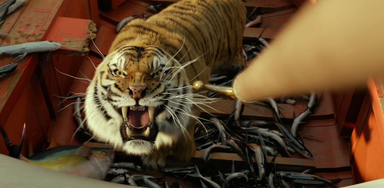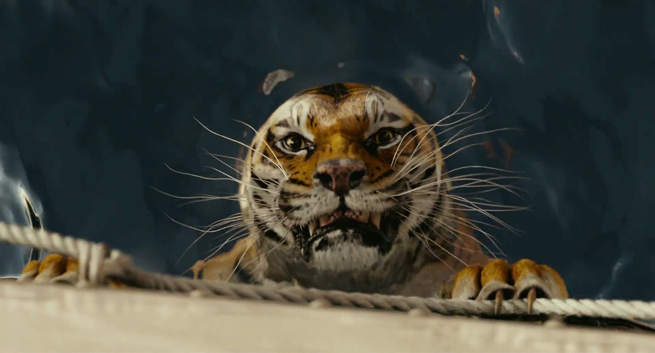 그 이별은 앞날을 예고한 듯합니다. 그렇게 고향을 떠나 아득한 바닷길을 헤매던 중 파이 가족을 실은 선박은 큰 풍랑을 맞이합니다. 배는 갑작스레 침몰하고, 탑승 선원 가운데 파이만이 어렵사리 목숨을 부지합니다. 살아남아 파이와 함께 구명정에 오른 건 동물들뿐이죠. 다리를 다친 얼룩말, 호시탐탐 먹잇감을 노리는 하이에나, 바나나 더미에 매달린 채 살아난 오랑우탄 오렌지 주스… 그런데 그때 가장 반갑지 않은 생존자가 하나 더 구명정으로 다가옵니다. 사나운 벵갈 호랑이 리처드 파커죠.