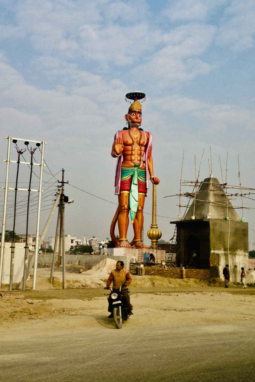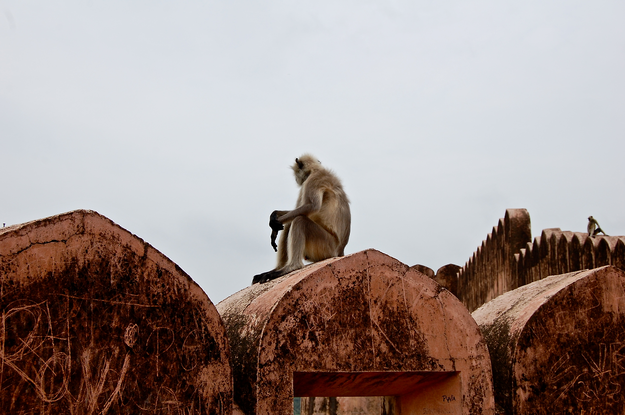인도의 손오공 하누만 신상과 요새를 지키는 인도 원숭이