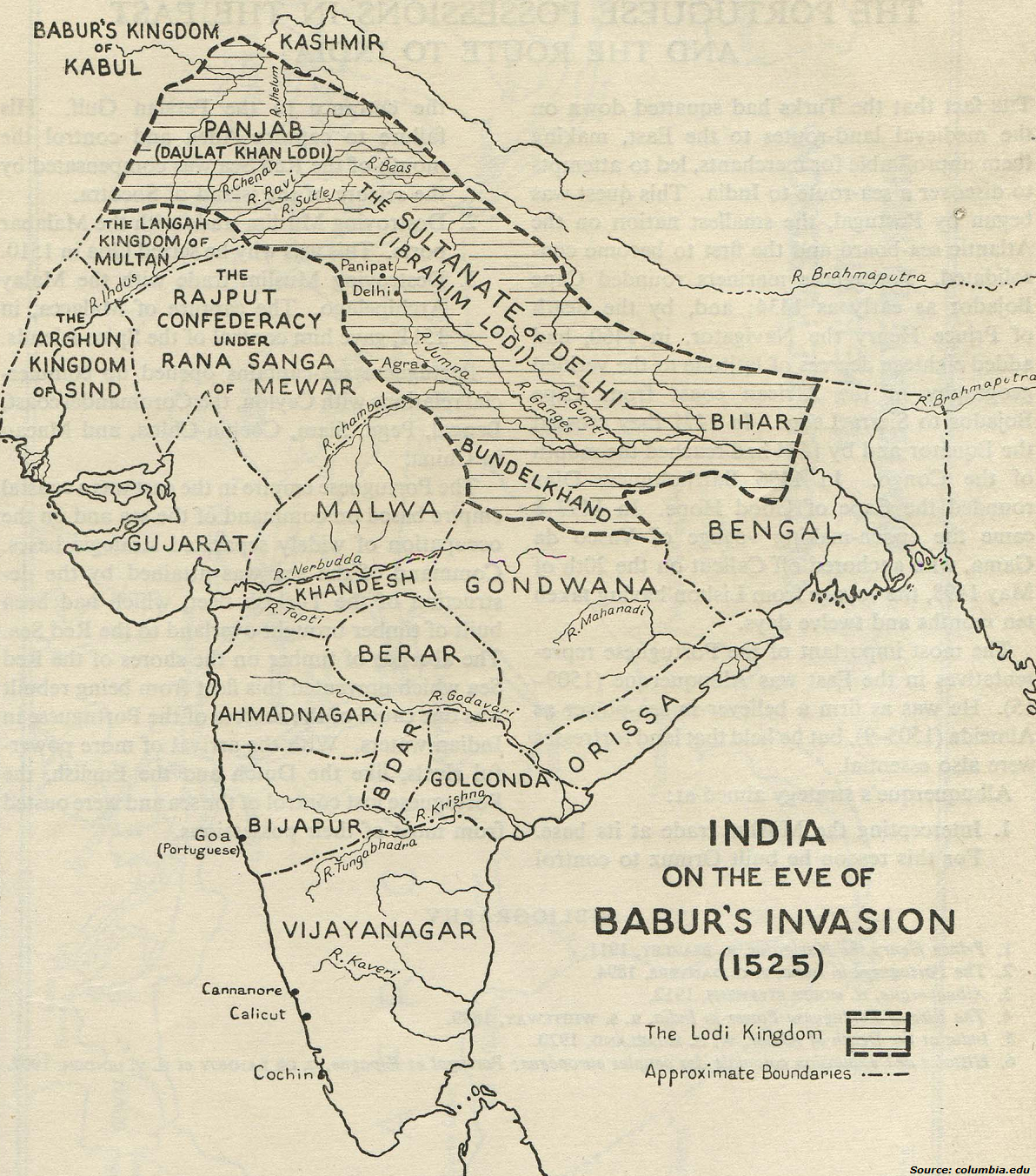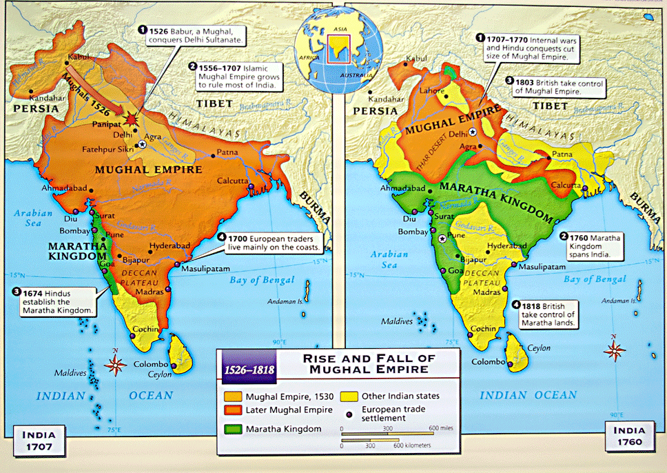 이브라힘 로디 치하의 델리 술탄조(좌), 바부르의 인도 진출과 무굴 제국의 흥망성쇠(우)