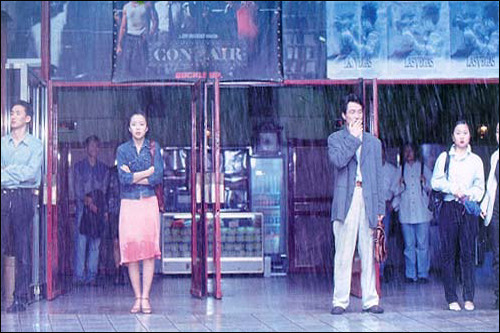 수렁에 빠진 동현에게 손을 내민 건 수현입니다. 소극적인 태도로 사랑을 놓쳤던 수현은 이제 동현에게 적극적으로 다가갑니다. 기다리겠다며, 꼭 만나고 싶다고 말합니다. 약속 장소는 지금은 추억이 된 종로의 영화관입니다. 사실 둘은 그 영화관에서 우연히 스쳐 지나간 적이 있죠(레코드점도 그렇고 그밖에도 영화에는 그런 장면으로 빼곡한데 지금 보면 좀 지나친 감도 있습니다). 동현도 약속 장소로 향합니다. 하지만, 동현은 수현을 보고도 주저하며 그대로 지나칩니다. 옛사랑의 트라우마와 새로운 만남의 두려움입니다. 그는 멀찍이 영화관 이층 카페에 앉아 수현을 바라봅니다. 그는 마음을 정할 수 없고 수현은 그럼에도 끝까지 자리를 지킨 채 동현을 기다립니다.