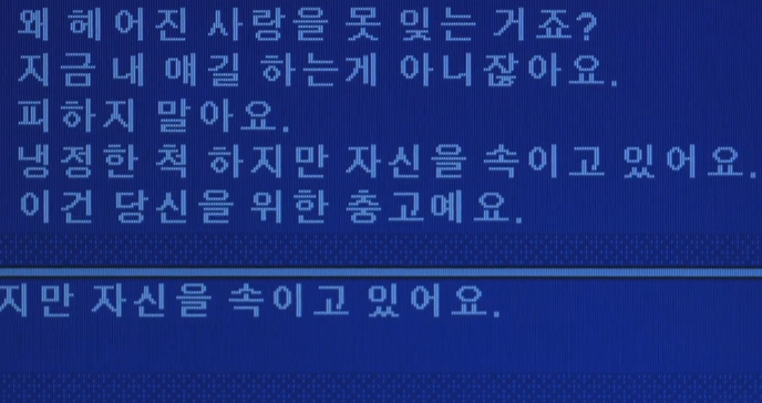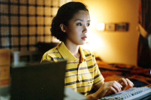 한편, 통신 판매원 수현(전도연)은 친구의 연인을 짝사랑합니다, 사실 그를 먼저 좋아한 건 수현이었지만, 큐피드의 화살은 엉뚱하게 꽂혀 그녀의 친구에게로 향했습니다. 제길… 묘하게 꼬였습니다. 아주 가까이 있지만 그러므로 다가갈 수 없는 사랑. 둘도 없는 친구의 연인을 뺐을 수 없고, 타인의 눈물을 흘리게 하면 결코 행복해질 수 없겠죠. 결국 모두에게 상처를 주지 않는 길은 홀로 단념하고 아파하는 것이지만, 그걸 알면서도 사랑의 미련은 수현을 한 걸음 물러서 지켜보게 만듭니다. 그리고 어느 밤, 수현은 답답한 마음에 드라이브를 나서고, 우연찮게 동현의 라디오 프로그램을 듣던 중 중앙선을 넘어 다가오던 차량에 큰 사고가 날 뻔합니다. 겨우 사고를 모면한 수현은 그 순간 라디오에서 흘러나온 <Pale Blue Eyes>를 잊을 수 없었고, 동현의 프로그램에 그 곡을 신청곡으로 올리게 되죠. 절묘한 타이밍에 음악으로 이어진 인연이 우연일 리 없다고 생각한 동현은 그런 수현과 연락하게 됩니다. 그렇게 동현과 수현은 ‘접속’하고 서로를 연결하게 됩니다. PC 통신으로 소통하기 시작한 그들은 각자의 아이디로 만납니다. 해피엔드 그리고 여인 2.