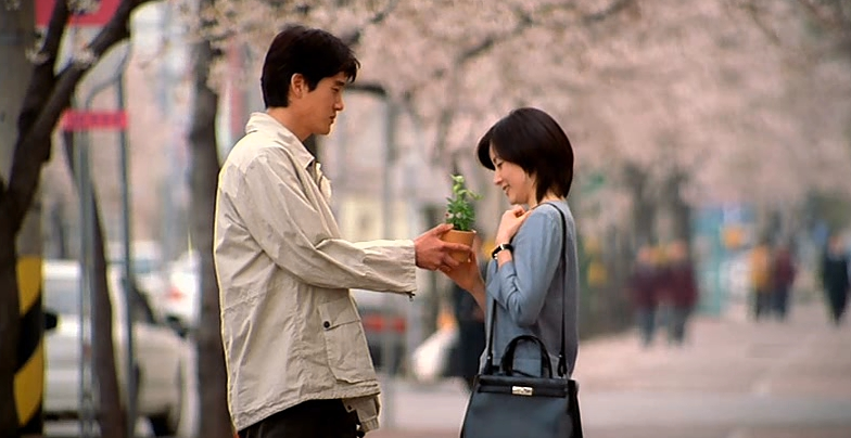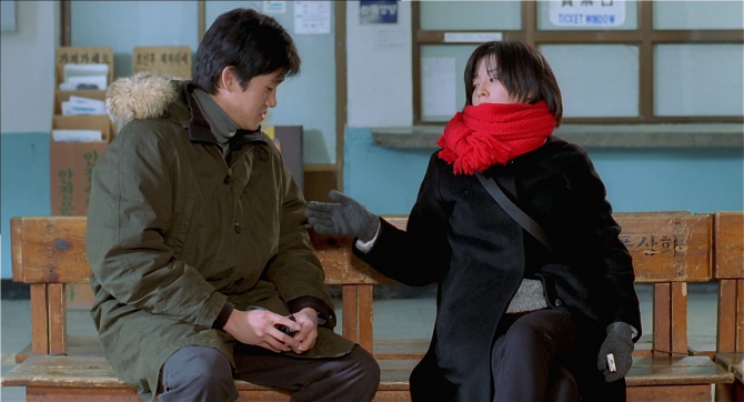 그런 상우에게 어느 겨울 은수(이영애)가 나타납니다. 지방 라디오 방송국에서 아나운서 겸 프로듀서로 일하는 은수가 ‘자연과 사람’이라는 코너를 위해 직접 소리 채집 작업에 나선 것이죠. 프로듀서와 음향기사로 만난 둘은 함께 여행하고, (일 하라고 했더니) 서서히 호감을 느끼며 연인 관계로 발전합니다. 마치 영화 속 자연의 소리처럼 어떤 극적인 계기보다 은근슬쩍 자연스레 사랑에 빠지는 모습은 이 영화의 백미입니다. 오죽하면 라면 먹고 갈래요라는 대사가 그다지도 두드러져 보일 수 있을까요? 아무튼 사- 서- 바람 불고 눈보라 칠 때 들리는 대밭 소리 같은 둘의 사랑과 함께 봄이 찾아옵니다.