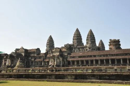 앙코르왓의 상징이라고 할 수 있는 저 세 개의 탑이 보이는 이 각도가 아마도 앙코르왓을 보여주는 가장 흔한 사진 아닐까 한다. 캄보디아 화폐에서도 볼 수 있고, 캄보디아 비자에도 세 개의 탑을 볼 수 있다. 캄보디아의 상징이라 해도 과언이 아니다.