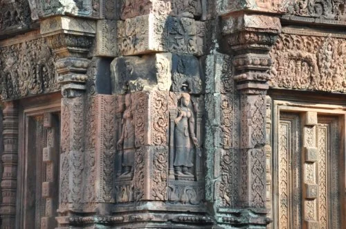 이곳의 부조는 크메르 예술의 정수라고 한다. 예술은 잘 모르지만, 정말 정교하다는 것은 문외한이 봐도 알 수 있다. 많은 사람들이 이 사원을 가장 아름다운 사원으로 꼽는다고 한다. 부조의 정교함을 본다면 그렇게 볼 수도 있다. 붉은 사암에 조각한 섬세한 부조들은 생생하고 아름답다. 하지만 이미 앙코르왓을 모두 둘러보고 왔기에 그 감흥이 떨어지는 것은 어쩔 수 없다. 사원의 규모는 매우 작아서 거대한 앙코르왓의 규모와 비교가 된다. 그러나 섬세한 부조들을 보고 있으면 왜 이곳을 크메르 예술의 정수라 하는지 이해가 될 것도 같다.