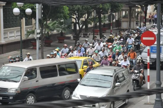 처음 베트남에 도착한 사람들에게 가장 먼저 눈에 보이는 두드러진 이미지는 아마도 오토바이의 홍수가 아닐까 싶다. 밤늦게 도착해서 호텔에 체크인해서 하룻밤을 보내고 아침에 호텔 문을 나선 우리를 맞아준 것은 끝없는 오토바이의 물결이었다.