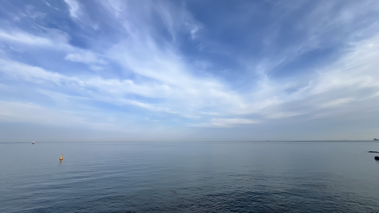 어느 순간 해가 수면 위로 반짝하는 것이 아니라,