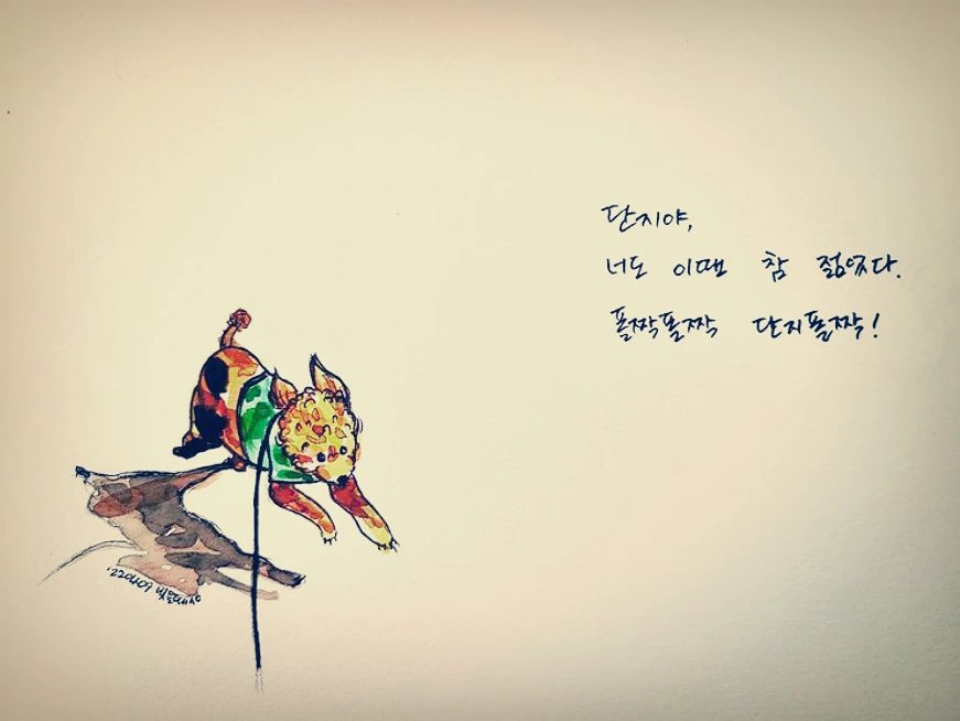 단지야, 그래도 쳐다볼 땐 성의껏 목 근육도 좀 이용해주지 않으련?
