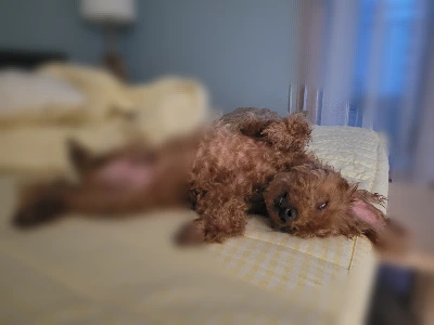 그러니까 10시는 규칙적인 우리 개님께서 잠자리에 드는 시간이다. 내가 급격한 체력 고갈로 10시면 침대로 가기 시작한 게 어언 7~8년 되었으니 그 때부터 단지도 자연스레 침대 발치 제자리에 눕게 된 거다. 하지만 나라고 일년 365일 내내 10시에 잠드는 것은 아니다. 때론 논다고 11시에, 주말이면 12시에 자기도 하니 그 때마다 단지 역시 스토커답게 내 옆에 있는 게 자연스러웠다.