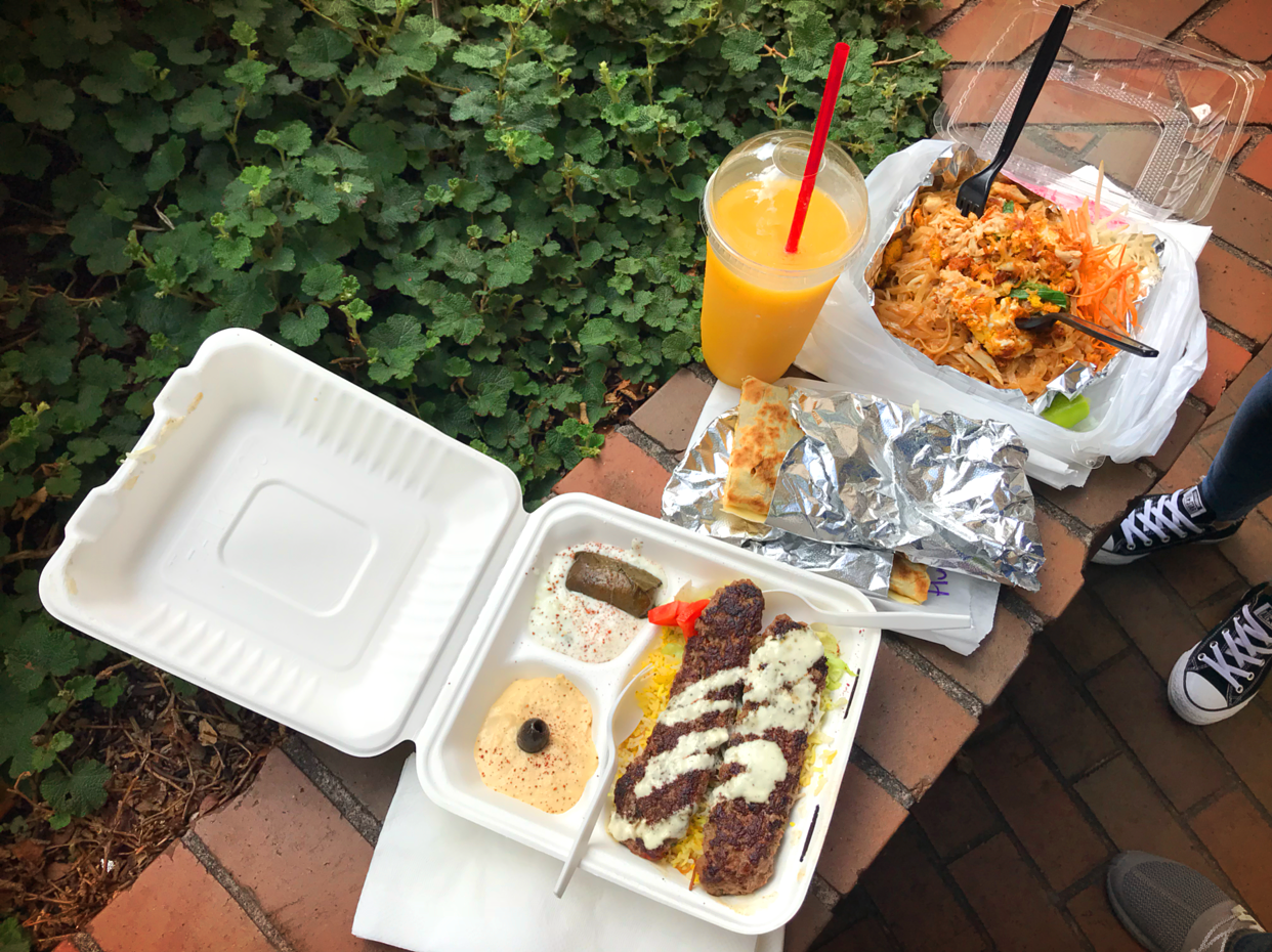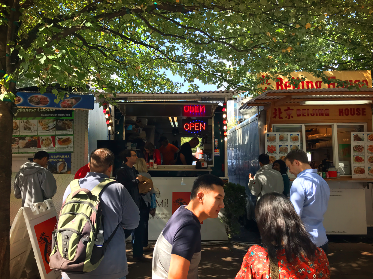 여행 4일차, 드디어 워싱턴 주를 벗어나 오레건주 최대 도시 포틀랜드로 향했다. 시애틀로부터 3~4시간 남짓 걸려 도착한 후 주린 배를 채우기 위해 도심 한 가운데 모여 있는 푸드 트럭을 찾았다. 여행자들이 꼭 한 번 들른다는 포틀랜드 푸드 트럭은 미국 뿐 아니라 다양한 국적의 음식을 부담없는 가격에 즐길 수 있다. 내가 미국에 살고부터 느낀 이민자의 나라로서의 가장 좋은 점은 단연 음식이다. 미국엔 세계 각국에서 온 이민자들이 운영하는 식당들이 많다. 포틀랜드 푸드 트럭도 아랍계 주인장의 할랄 푸드, 한국 사람의 비빔밥 타코, 태국 사장님의 팟타야 등 현지 사람들이 직접 만들기에 음식 맛이 유명하다. 우리는 그 중 몇가지 메뉴를 골라 바로 옆 공원에서 늦은 점심을 해결했다.