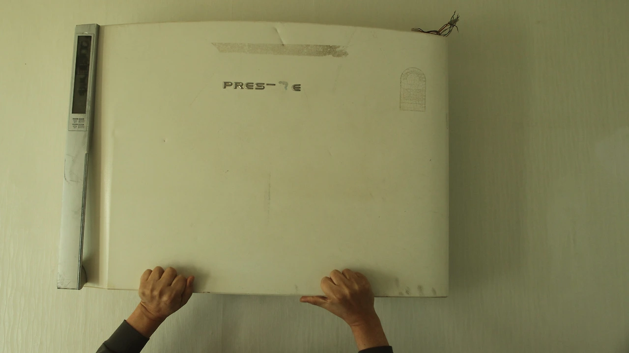 쓰레기 더미에서 냉장고 문짝 하나를 건졌다