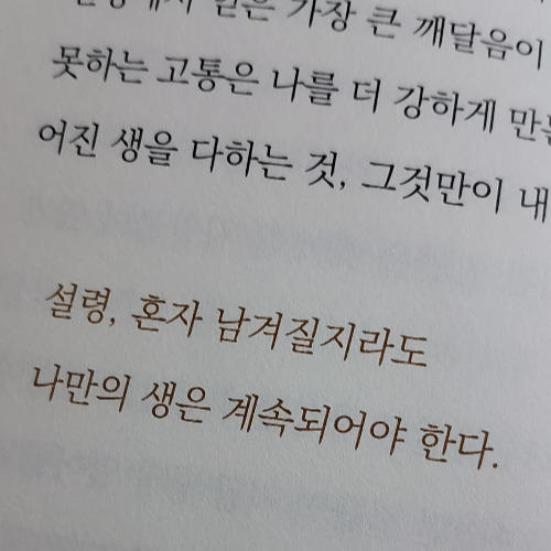 앞서 같은 길을 묵묵히 걸어간 작가가 뒤따르는 후배들에게 아낌없이 조언한 것들을 사실 나는 이미 알고 있었다. 문제는 나의 의지이다. 한 곳만 파는 외골수 기질과 게으른 완벽주의를 내몸에서 벗겨내는 것이 급선무라는 판단에 이르렀다. 벗겨낸 자리에 나 자신에 대한 확신과 믿음을 입히고, 성실하게 써보기로 결심했다.