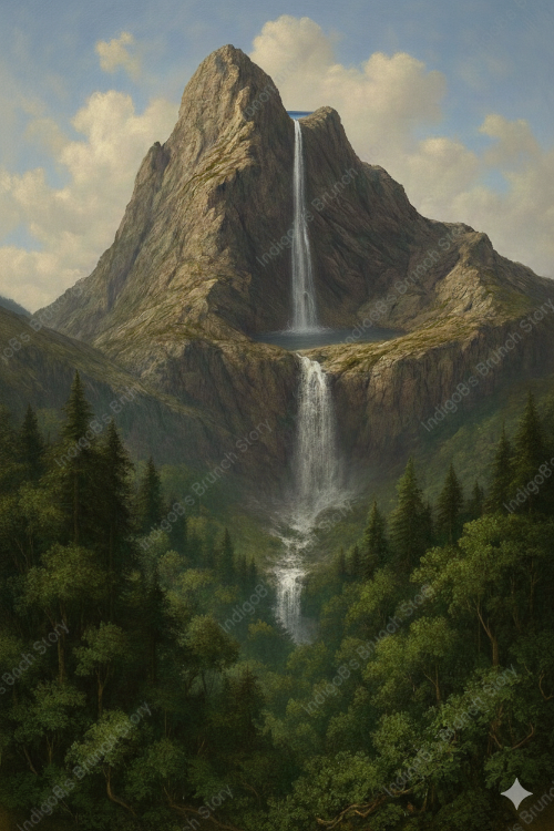 산은 오르면 오를수록 커다란 바위들이 앞을 가로막아 꼭 절벽처럼 느껴졌다. 병풍처럼 둘러싸인 절벽 꼭대기에는 아주 넓고 맑은 호수가 하나 있었는데, 신기하게도 아무리 지독한 가뭄이 와도 그 물은 마르는 법이 없었다. 마을 사람들은 그 호수 밑바닥이 끝도 없이 깊을 것이라고 소곤대곤 했다. 호수 물이 절벽 끝으로 모여 폭포가 되어 쏟아졌는데, 좁고 길게 뻗은 물줄기가 꼭 용 한 마리가 하늘을 향해 거꾸로 솟구쳐 오르는 것처럼 멋졌다.