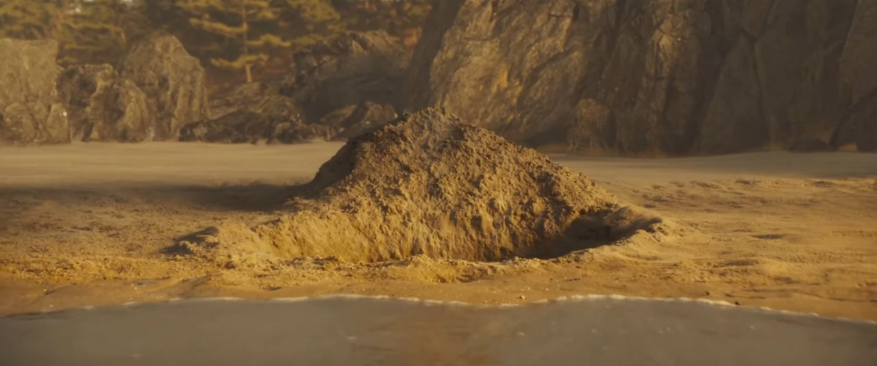 그 시각 서래는 시간을 확인한 후 들고 온 양동이로 모래를 퍼내며 깊숙이 구덩이를 판다. 구덩이 앞엔 모래가 산처럼 쌓인다. 만조가 점점 구덩이 쪽으로 밀려오고 있다. 양동이를 던지고 서래가 구덩이 안으로 들어간다. 밀려오는 물결 너머로 저녁노을이 진다. 서래가 코트 안주머니에서 술병을 꺼내 마신다. 바닷물이 모래를 끌어와 구덩이로 들어온다.