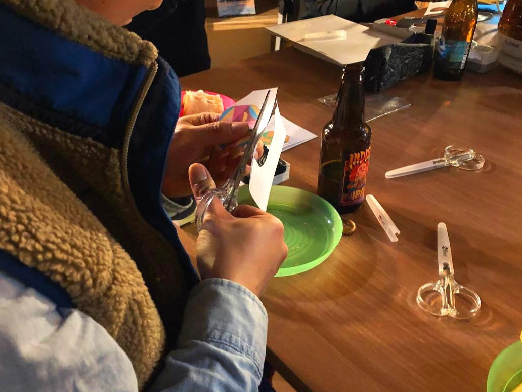문화팀 행사에는 '형식적인 자기소개'와 '부자연스러운 아이스브레이킹' 강요가 금지되어 있습니다만, 대화를 나누는 모임이라면 시작하기 전에 분위기를 부드럽게 하는 시간은 반드시 필요하지요. 장욱조 선생님은 종이왕답게 자신이 준비해온 간단한 만들기를 하며 얼음을 깨자고 제안했고, 참여자들은 종이를 오려서 작은 팽이를 만들고, 이를 후후 불며 '대화를 나눌 수 있을 정도의 친밀함'을 다졌습니다.
