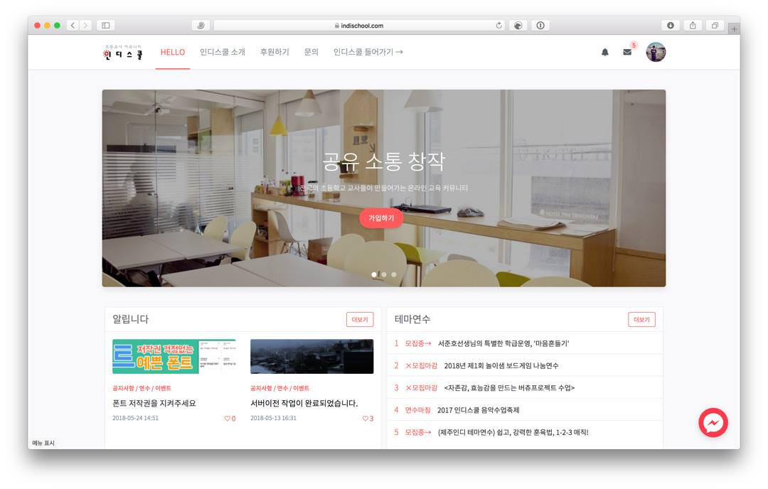 서버 이전 이외에 인디스쿨 통합검색 기능이 부활한 것, 디자인과 메뉴가 개편된 것도 올해 상반기의 큰 변화입니다. 하나하나 회의하고 학습하며 편리하고 직관적인 웹사이트를 만들고자 노력하는 기술연구팀을 언제나 존경해왔지만, 올해 여름에는 특별한 애정과 고마움을 느꼈습니다.