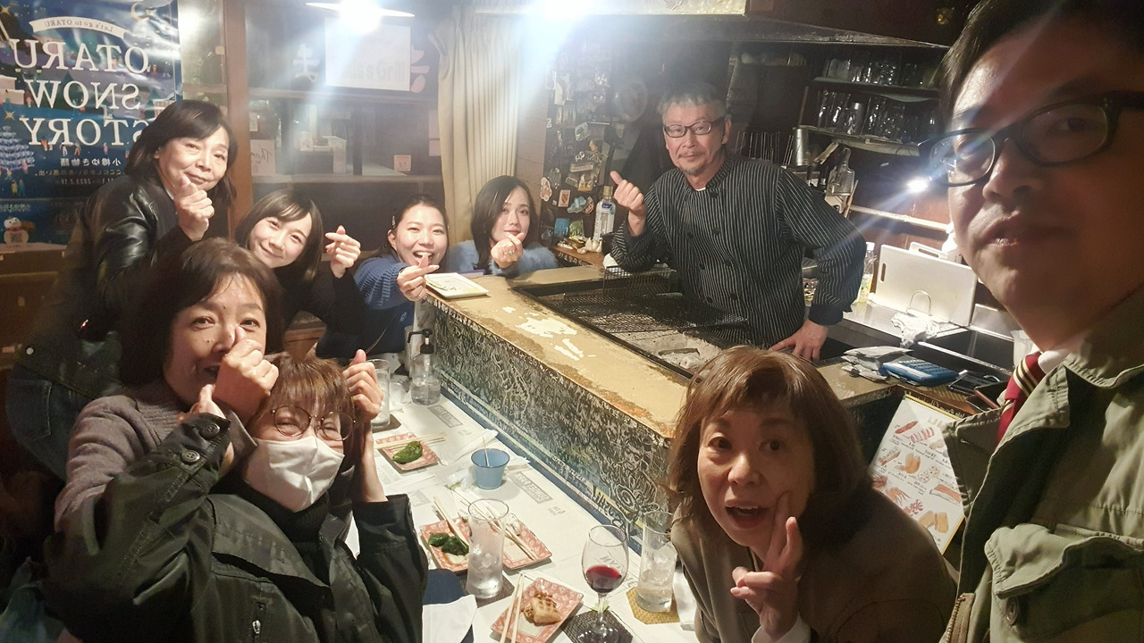 오타루의 지역 정서 담뿍 맛본 1차 술집, 그 여닫이 문을 열고 나선다.