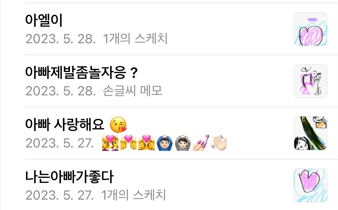 그리고 나중에야 딸아이가 내 핸드폰에 몰래 그려놓은 (0과 1이 반복되고 양자역학적 현상이 폭풍처럼 일어났을 핸드폰)에 남겨진… 메모를 보고 다시 한번 가슴이 아려왔다…