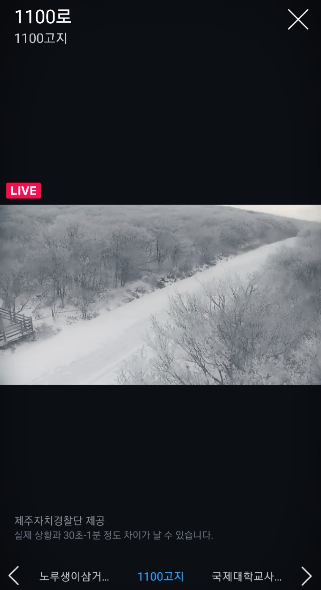 우와 눈이 많이 왔다. 이거 비행기는 착륙할 수 있나? 차 가지고 공항까지 갈 수 있을까? 제주시와 서귀포시를 연결하는 여러 도로 중 해발고도가 가장 높고 가장 빠른 1100도로는 아예 눈에 파묻혀서 도로가 통제되었다.