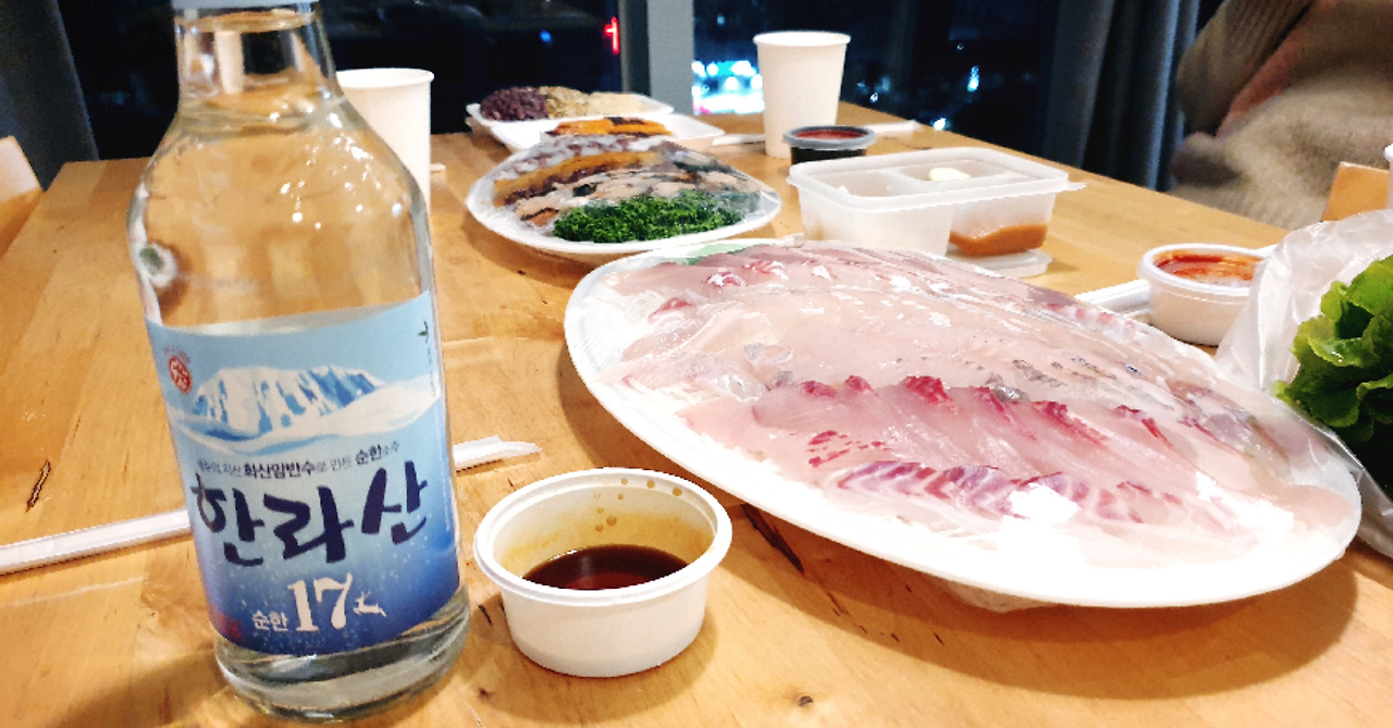 사람들이 북적북적한 시장에서 회와 해산물, 오메기 떡, 그리고 애들 먹을 주전부리들을 사서 숙소로 돌아왔다. 숙소에서 씻고 나서 또 성대한 저녁 식사를 했다.