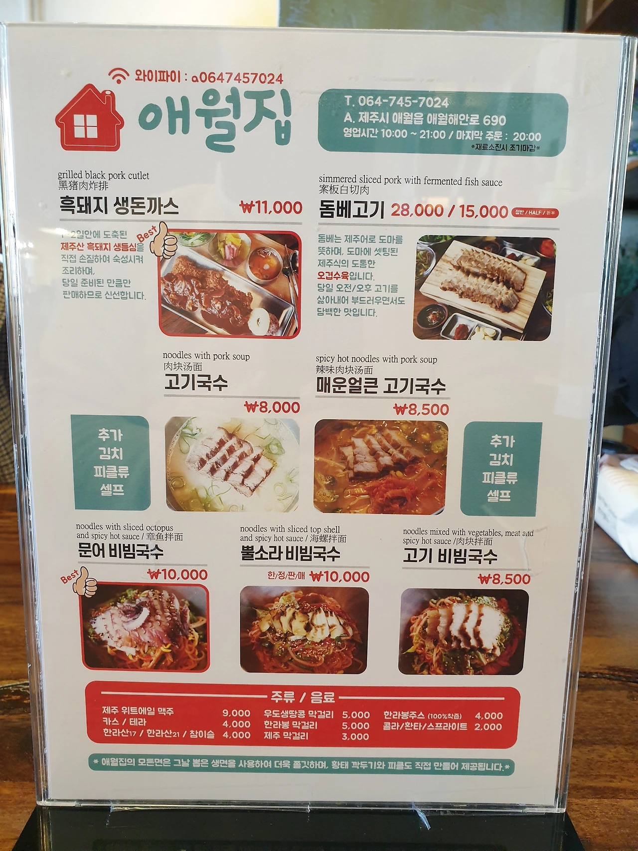 고기국수와 돈까스가 너무 맛있는 대박 맛집이었다. 배가 고파서 더 맛있게 느껴진 것인지 제주 식당의 평균치가 높은 것인지는 모르겠지만 무지 맛있었다.