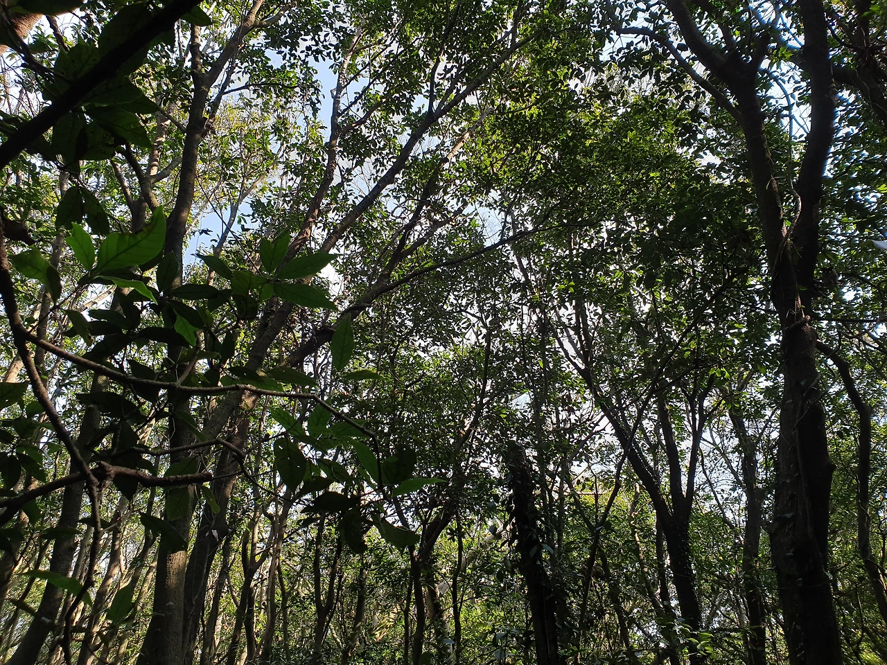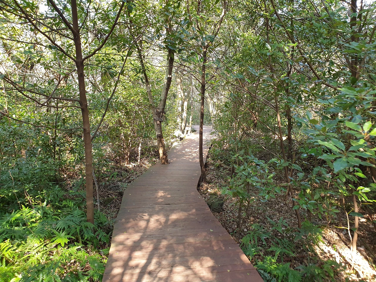 이름 모를 양치식물들과 육지의 숲과는 다른 제주만의 독특한 매력의 숲이 펼쳐진다. 하늘을 덮어버린다는 유럽의 검은 숲까지는 아닐지라도 울창한 숲의 나무들이 빛을 많이 가려 어두울 지경이다.