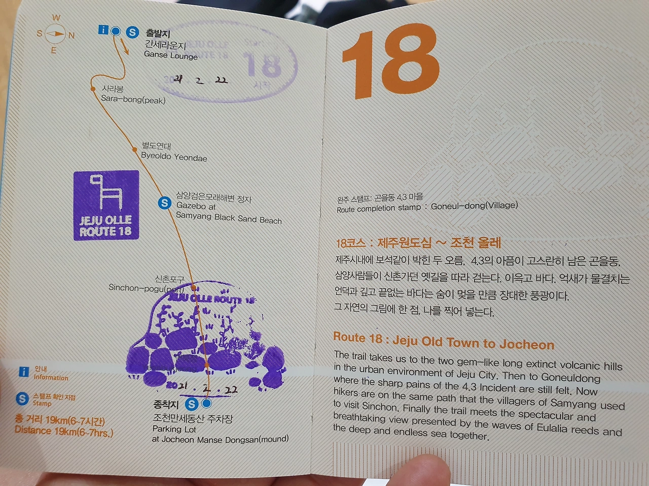 18코스 도착 스탬프를 꽝 찍었다. 드디어 18코스 완주.